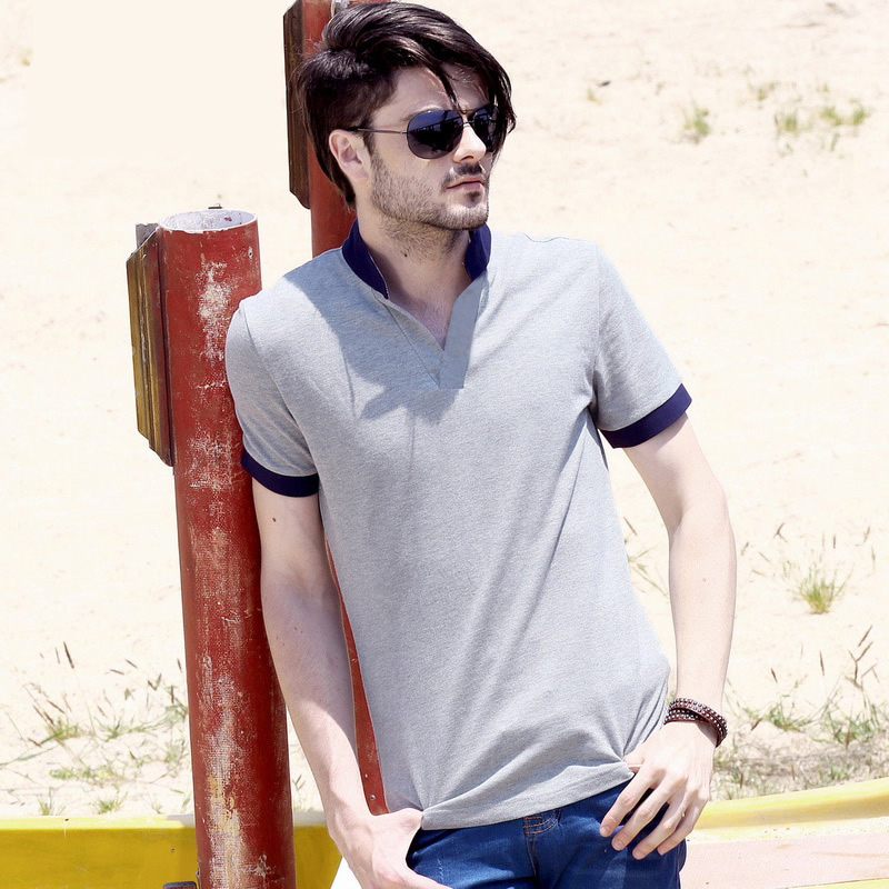 花灰色衣領(lǐng)袖口撞色,翻領(lǐng)短袖T恤衫,時尚款式定制,精梭純棉品質(zhì)