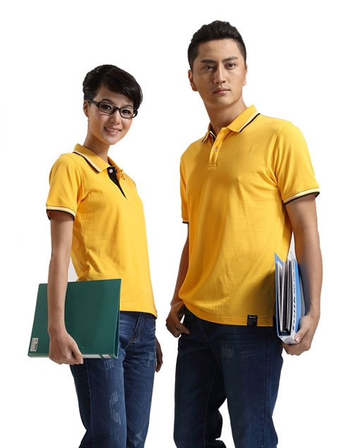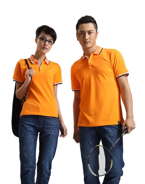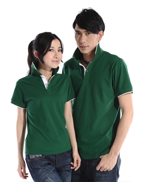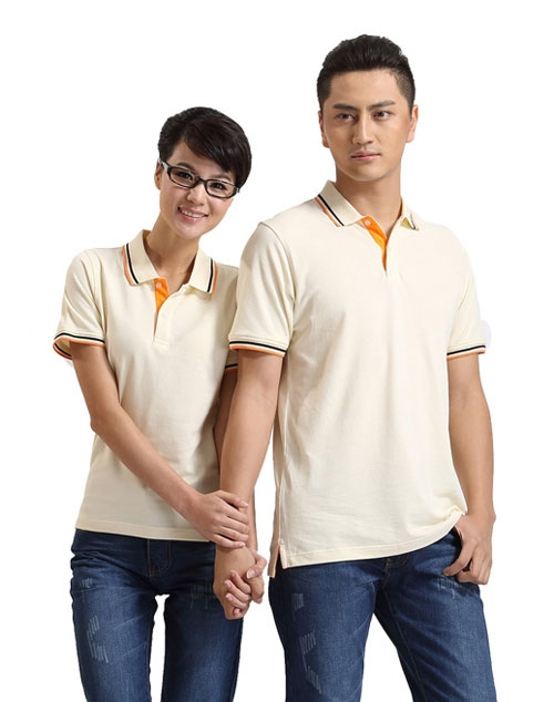 白色領(lǐng)袖撞色,男女時(shí)尚T恤款式定制,可刺繡公司標(biāo)志