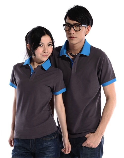 花灰色衣領(lǐng)袖口撞色,翻領(lǐng)短袖T恤衫,時(shí)尚款式定制,精梭純棉品質(zhì)