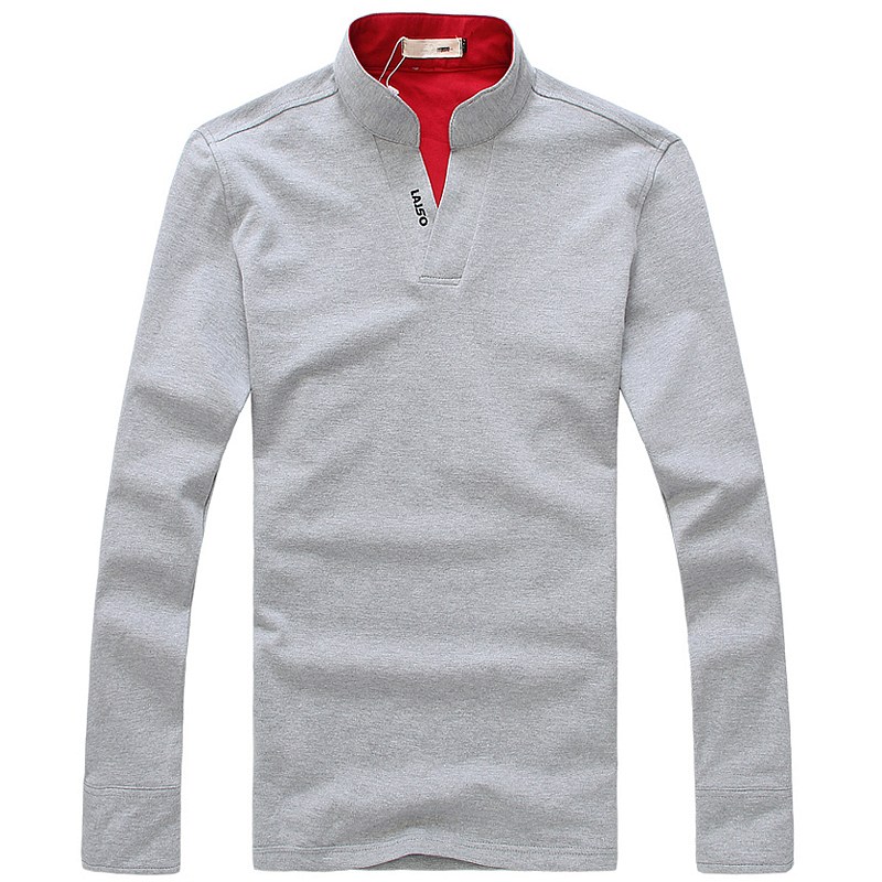 > 淺花灰色時尚立領長袖T恤衫訂制