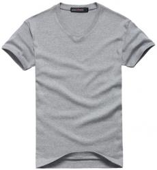 【定制】花灰色桃領時尚休閑空白T恤衫