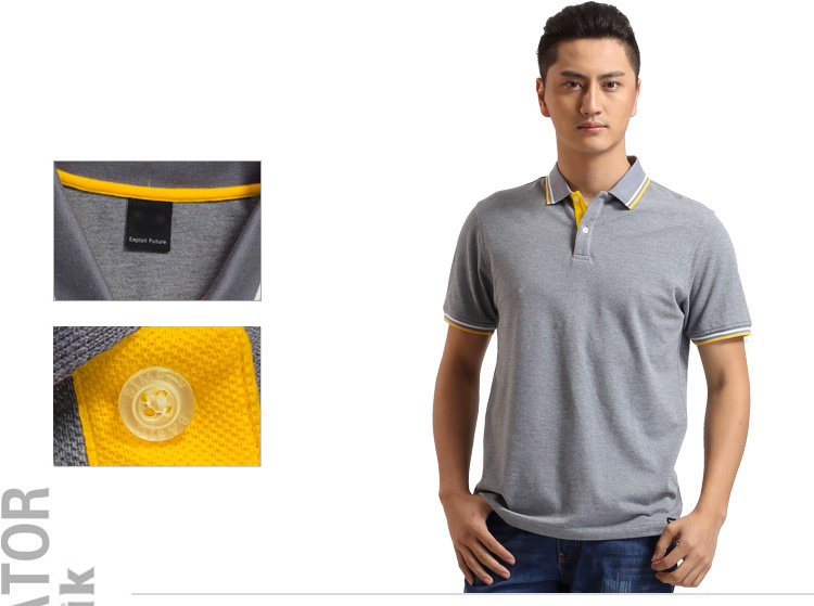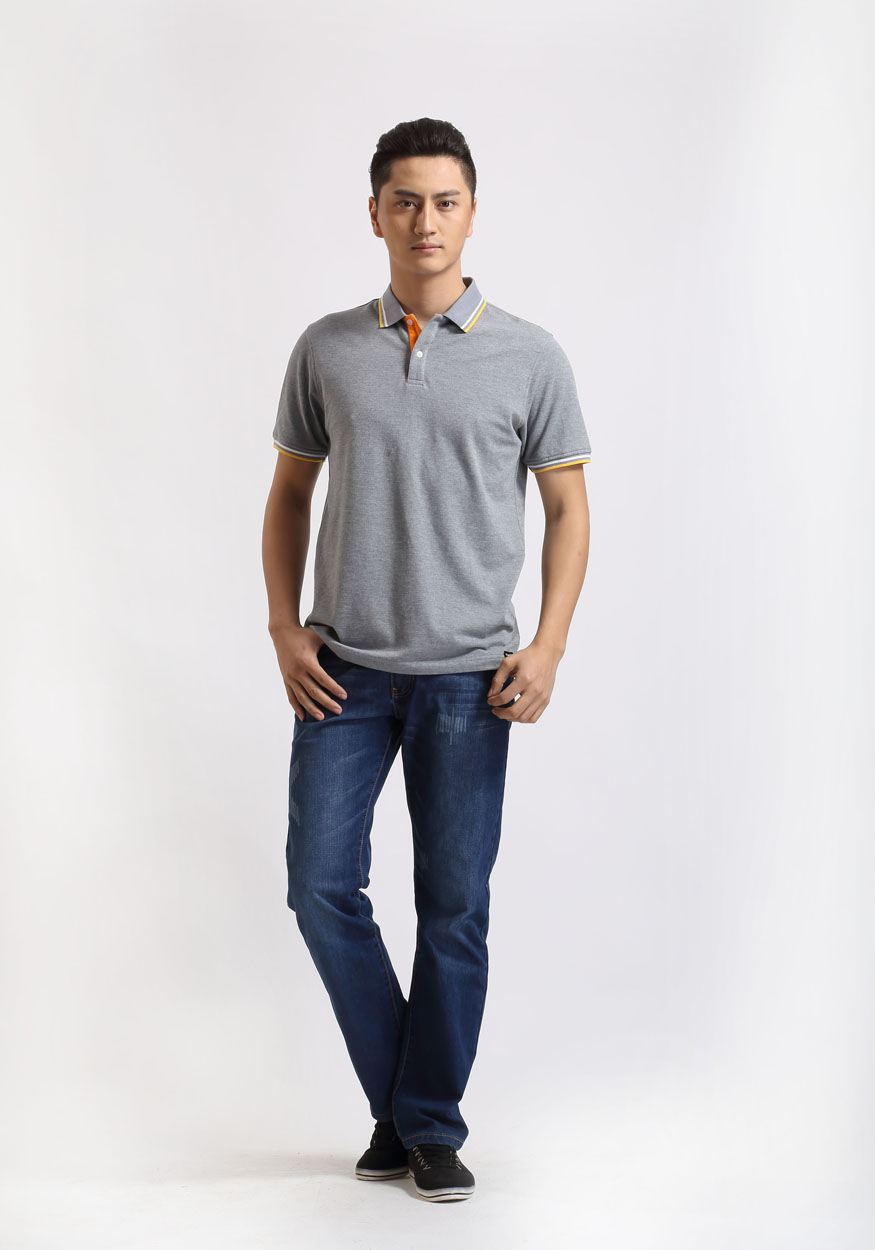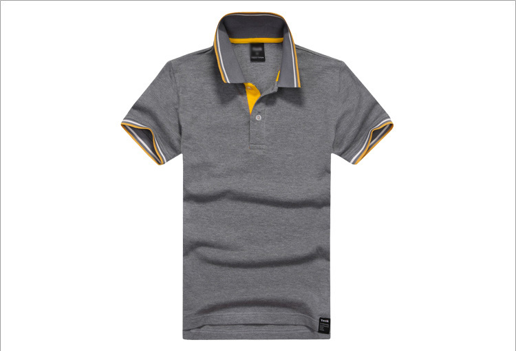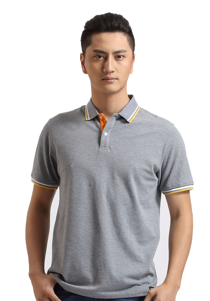 花灰色衣領(lǐng)袖口撞色,翻領(lǐng)短袖T恤衫,時(shí)尚款式定制,精梭純棉品質(zhì)