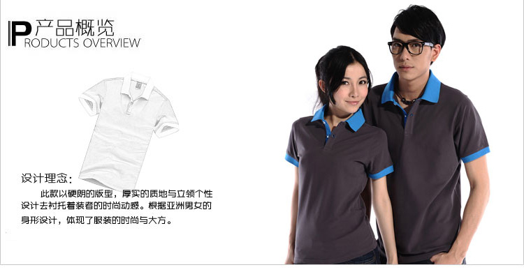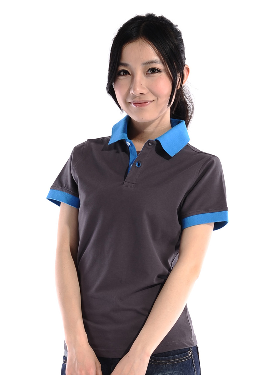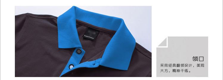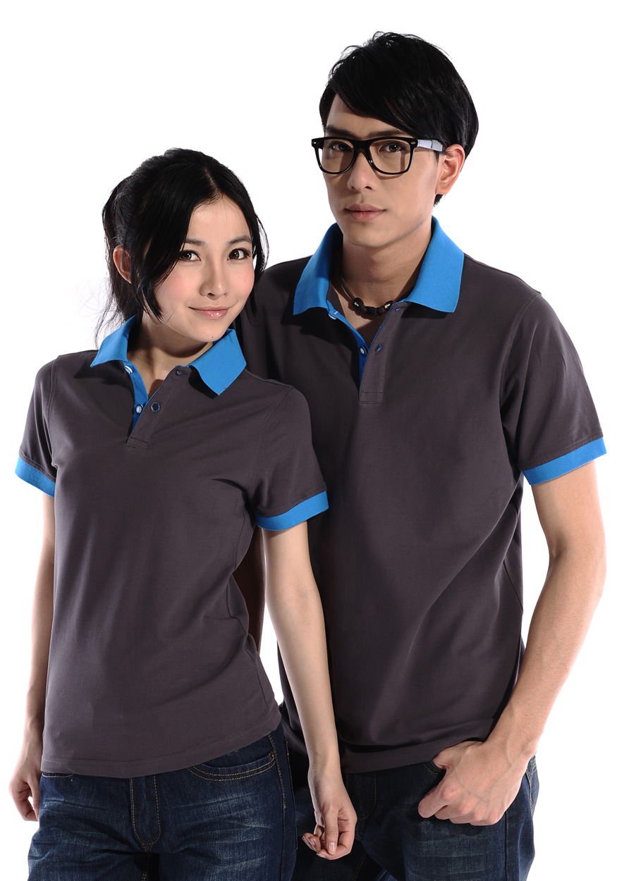 > 深灰色珠地棉POLO衫,領(lǐng)袖撞藍(lán)色,男女時尚款定制1
