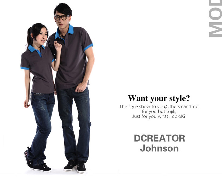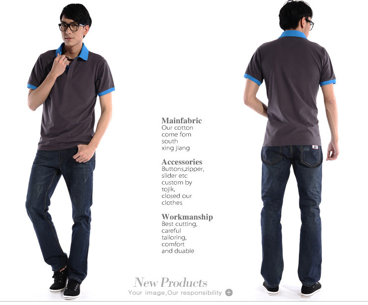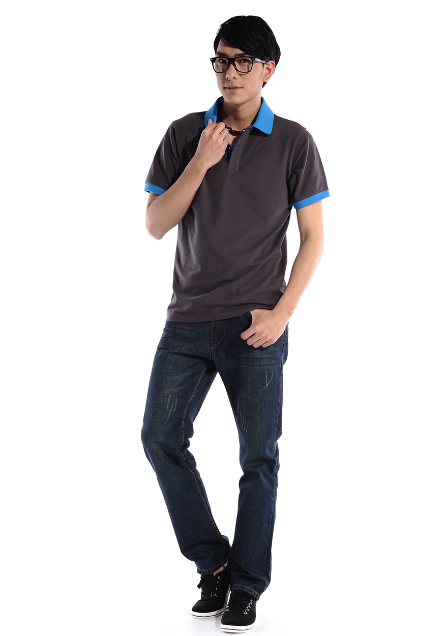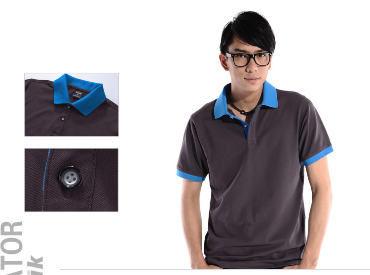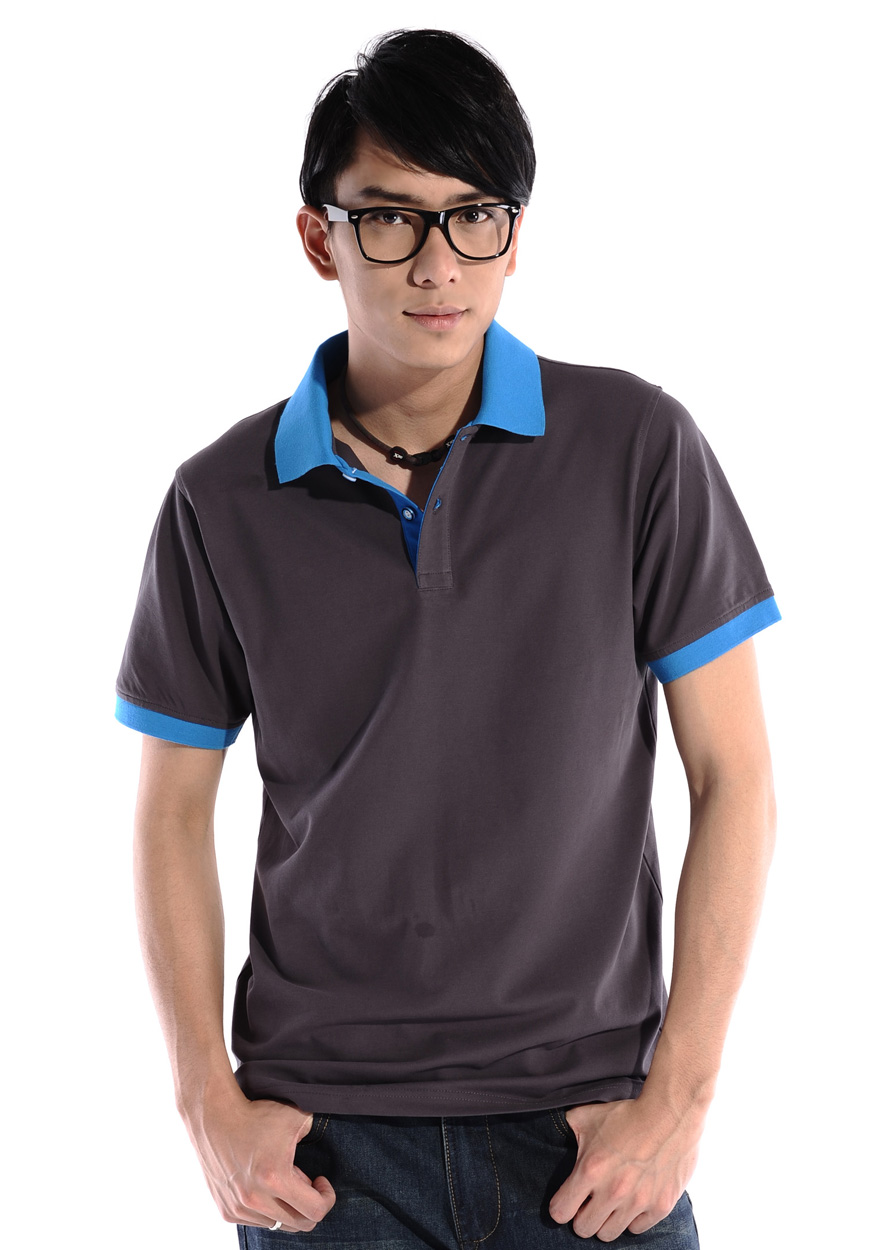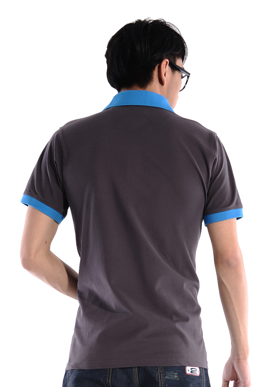 花灰色衣領(lǐng)袖口撞色,翻領(lǐng)短袖T恤衫,時尚款式定制,精梭純棉品質(zhì)
