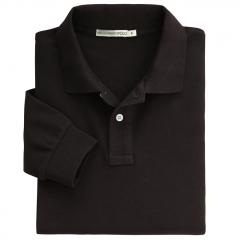 黑色男款長(zhǎng)袖POLO衫 珠地精梭純棉材質(zhì)