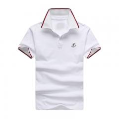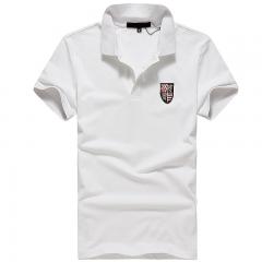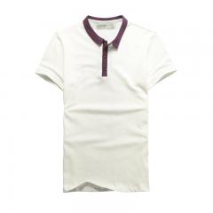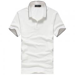 白色男款時尚t恤衫 翻領(lǐng)短袖珠地棉印制