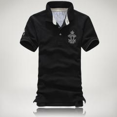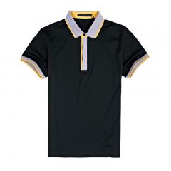 黑色時尚男款翻領(lǐng)短袖T恤衫工廠定做