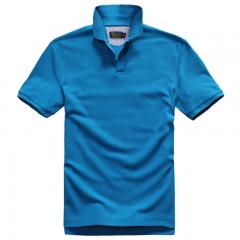 【定制】藍色翻領(lǐng)時尚休閑T恤衫男款全棉定做制作