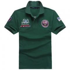 綠色男士短袖翻領POLO衫 時尚繡花圖案