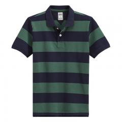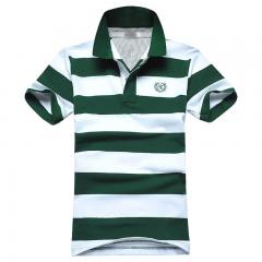 【定制】藍綠條紋T恤衫男士翻領短袖時尚來襲款式訂做