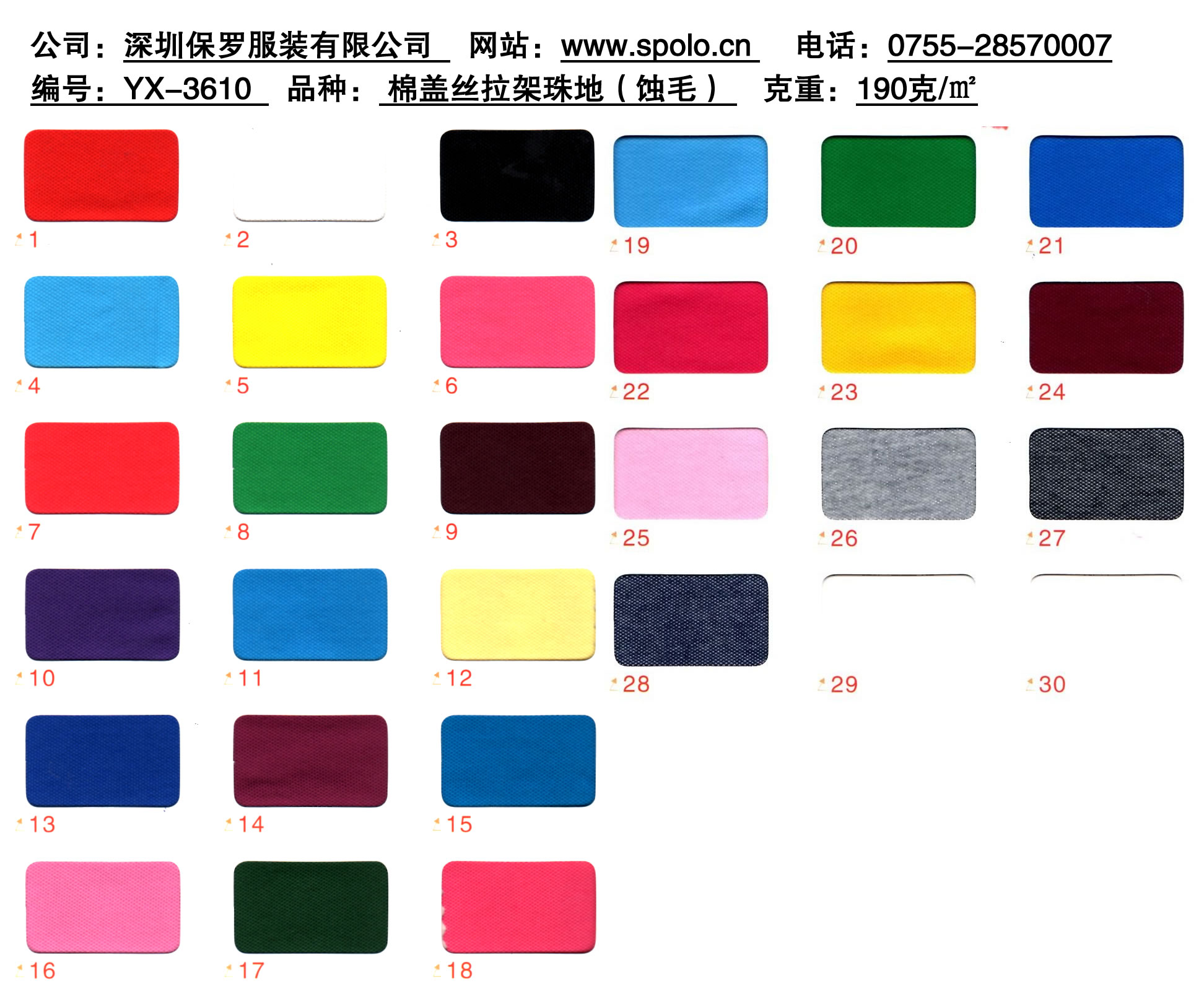 成份:65%棉,30%滌綸,5%氨綸