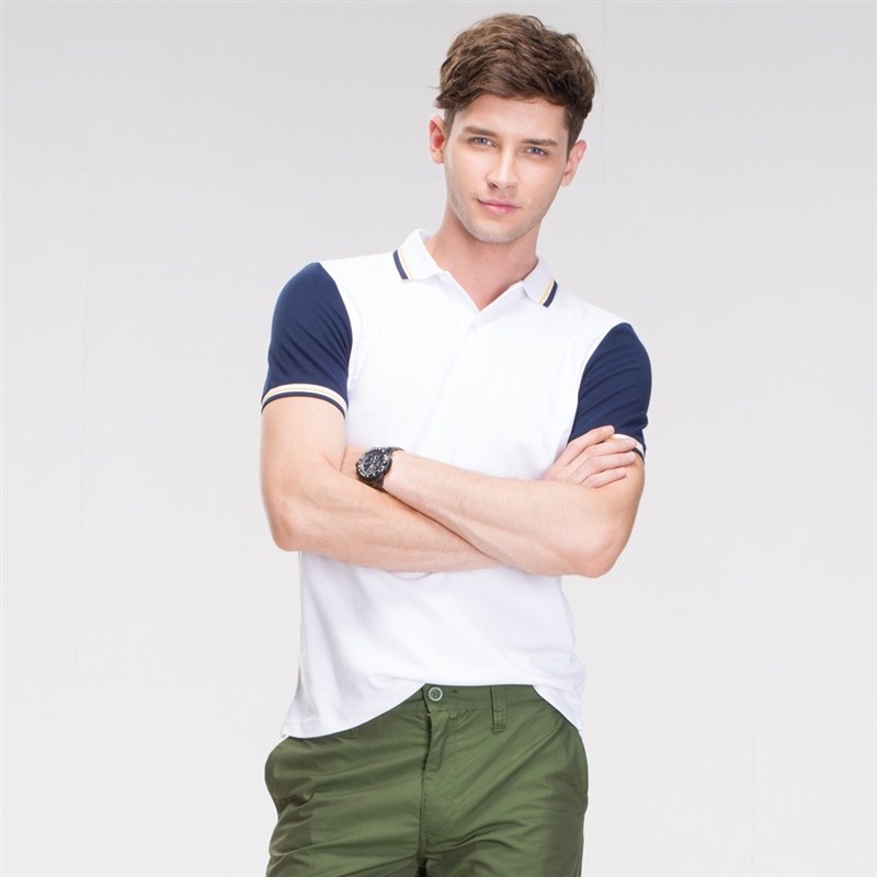 白色領(lǐng)袖撞色,男女時尚T恤款式定制,可刺繡公司標志