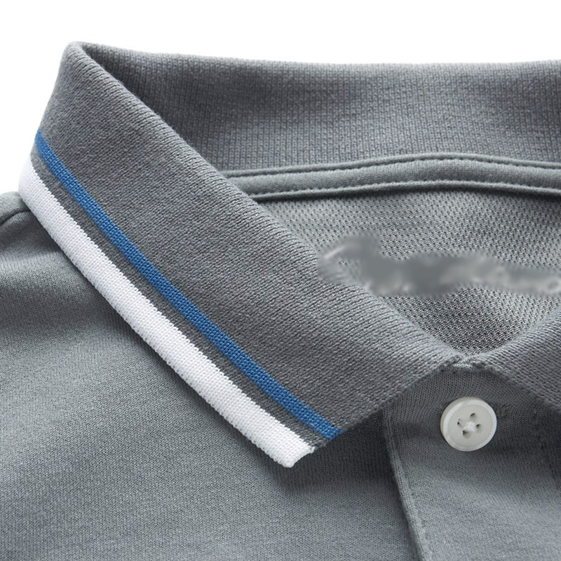 花灰色衣領(lǐng)袖口撞色,翻領(lǐng)短袖T恤衫,時尚款式定制,精梭純棉品質(zhì)