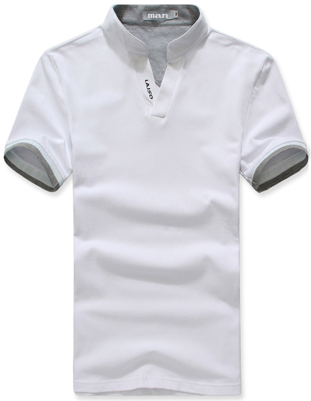 白色領(lǐng)袖撞色,男女時(shí)尚T恤款式定制,可刺繡公司標(biāo)志