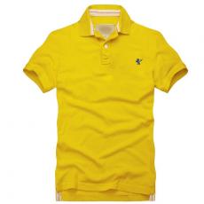 黃色男款全棉翻領(lǐng)短袖T恤衫加工印制