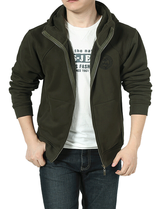 > 時(shí)尚軍綠色連帽開衫衛(wèi)衣