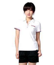 白色衣服搭配雙條紋藍(lán)色邊,休閑清新。精選天然環(huán)保棉成份面料,精梳珠地面料,表面呈疏空狀,有如蜂巢,透氣舒適。