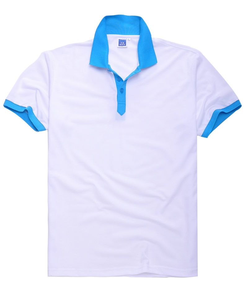 白色領袖撞色,男女時尚T恤款式定制,可刺繡公司標志