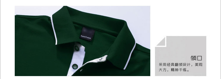 > 墨綠色珠地純棉,領(lǐng)袖白色間條撞色款式定制 1