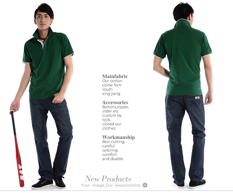 墨綠色珠地純棉,領(lǐng)袖白色間條撞色款式定制 1