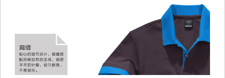 深灰色珠地棉POLO衫,領(lǐng)袖撞藍(lán)色,男女時尚款定制1