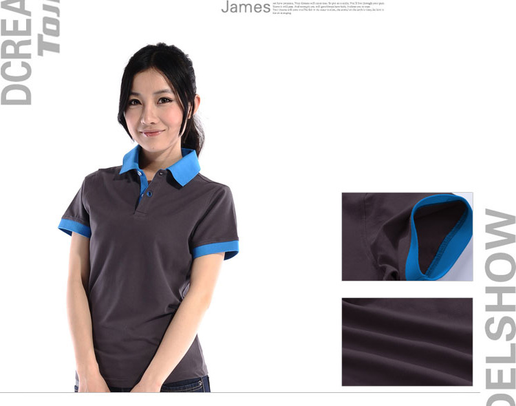 花灰色衣領(lǐng)袖口撞色,翻領(lǐng)短袖T恤衫,時尚款式定制,精梭純棉品質(zhì)