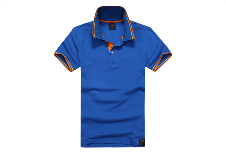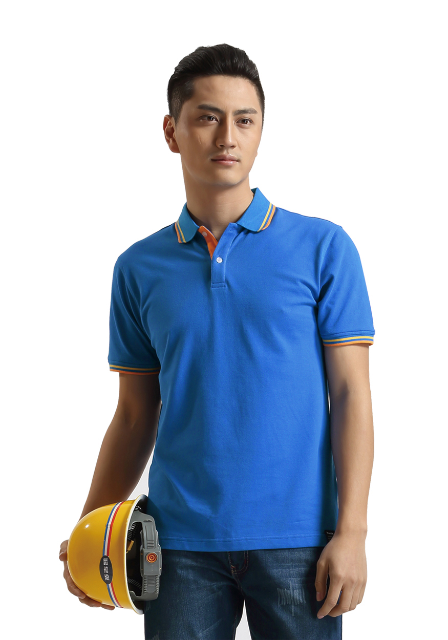 天藍色珠地棉T恤衫,領袖撞白色,男女時尚款定做 1