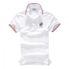 白色男款短袖精梭棉POLO衫 領(lǐng)袖撞色款式制作