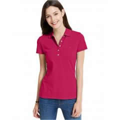 【定制】大紅色女士翻領短袖t恤衫款式,免費設計