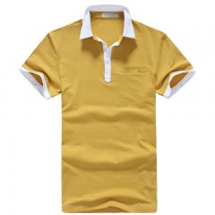 黃色男士翻領(lǐng)短袖 珠地精梭棉POLO衫制作