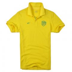 黃色男款全棉翻領(lǐng)短袖T恤衫加工印制