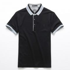 黑色男款短袖POLO衫 領袖撞色時尚款式制作