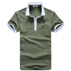 綠色男款短袖精梭棉T恤衫 雙領時尚款式定做