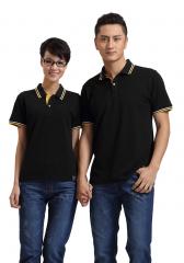 黑色珠地純棉t恤衫,領(lǐng)袖間條撞色,門襟撞色款式制作