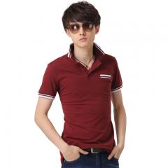 深紅色男士翻領(lǐng)短袖POLO衫 珠地精梭棉材質(zhì)